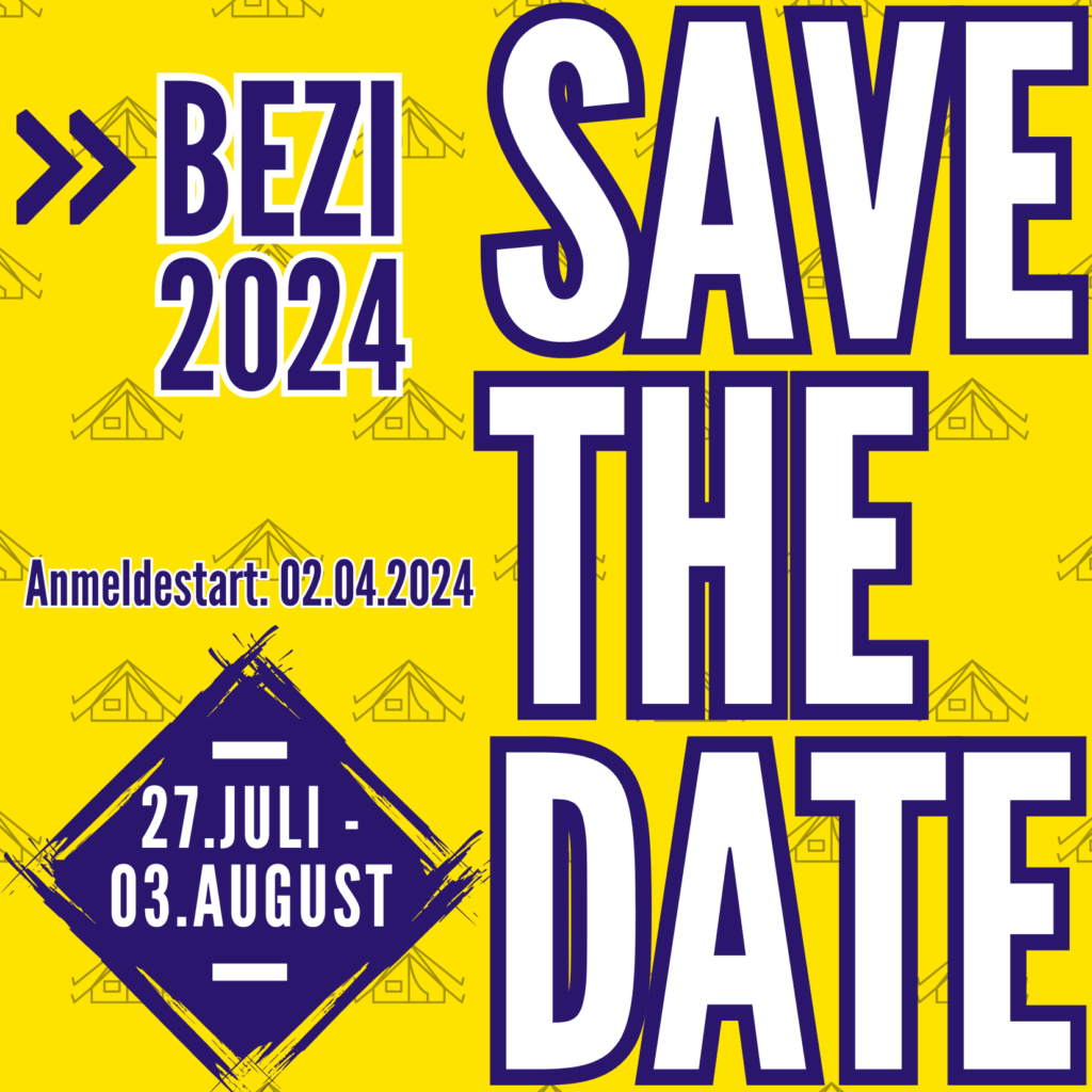 Seid bereit für ein unvergessliches Sommer-Abenteuer! Das Bezirkszeltlager steht in den Startlöchern und wir können es kaum erwarten, mit Euch eine unvergessliche Zeit zu erleben. Notiert euch schon mal den 02.04.2024, denn an diesem Tag öffnen die Anmeldungen hier auf unserer Homepage!